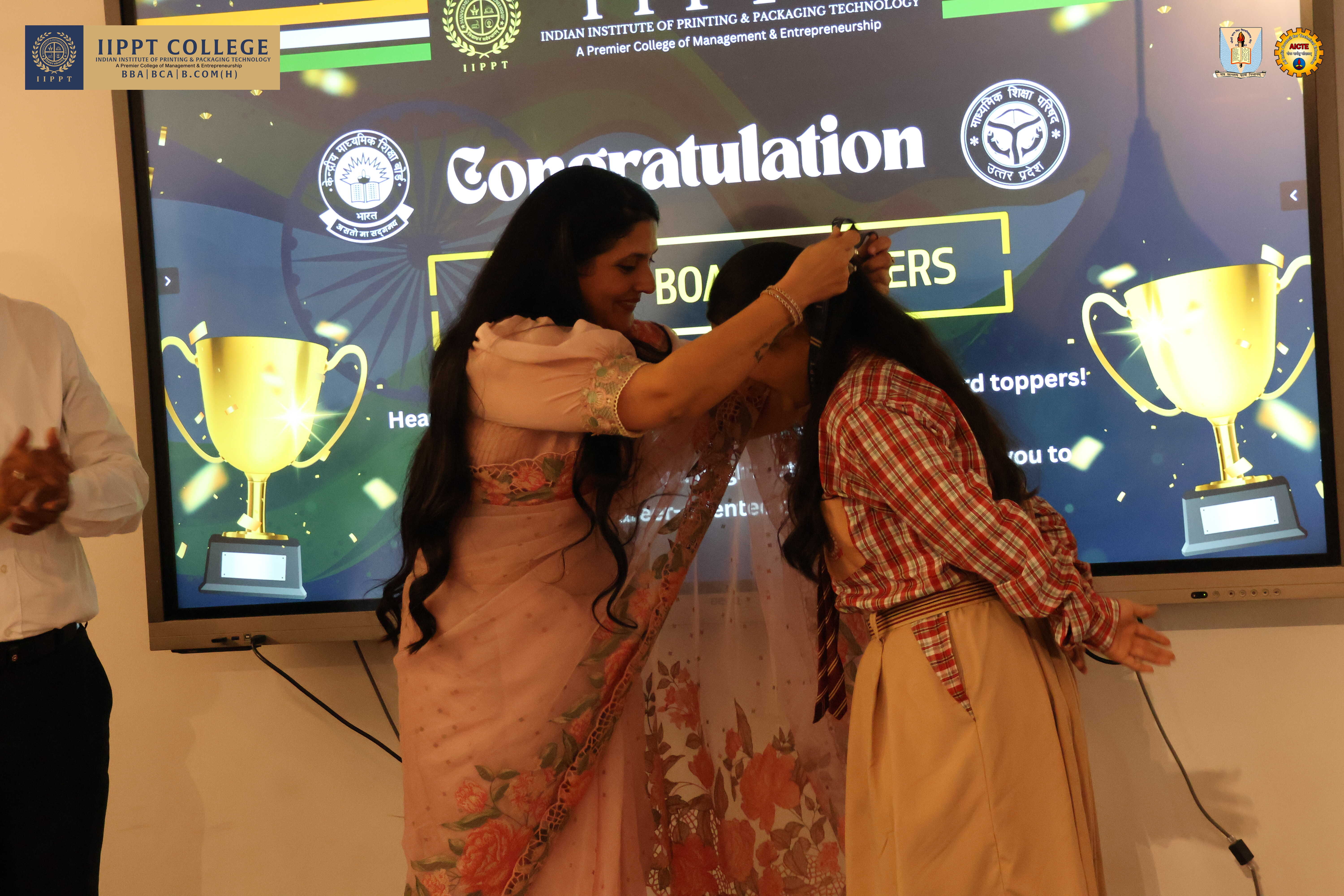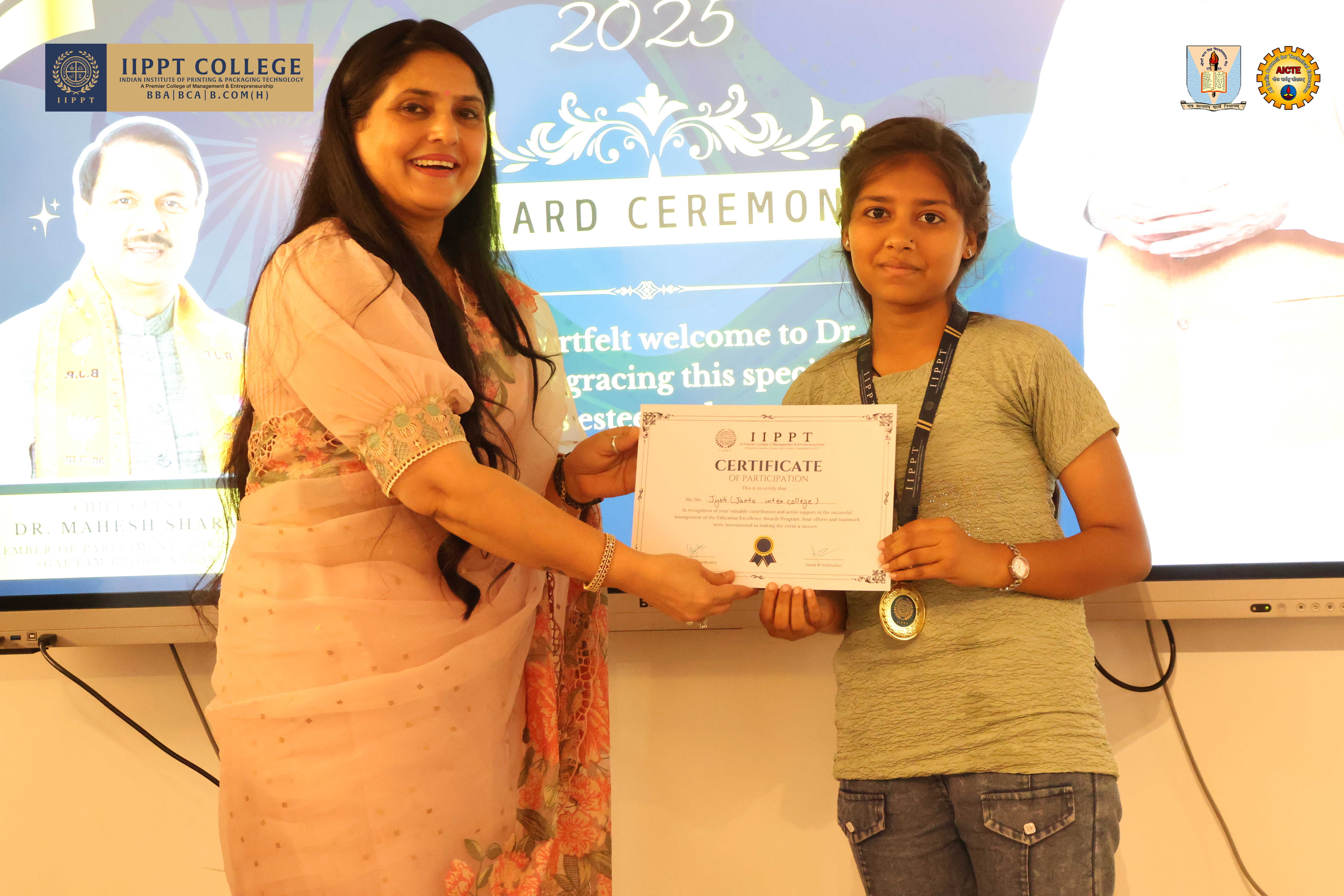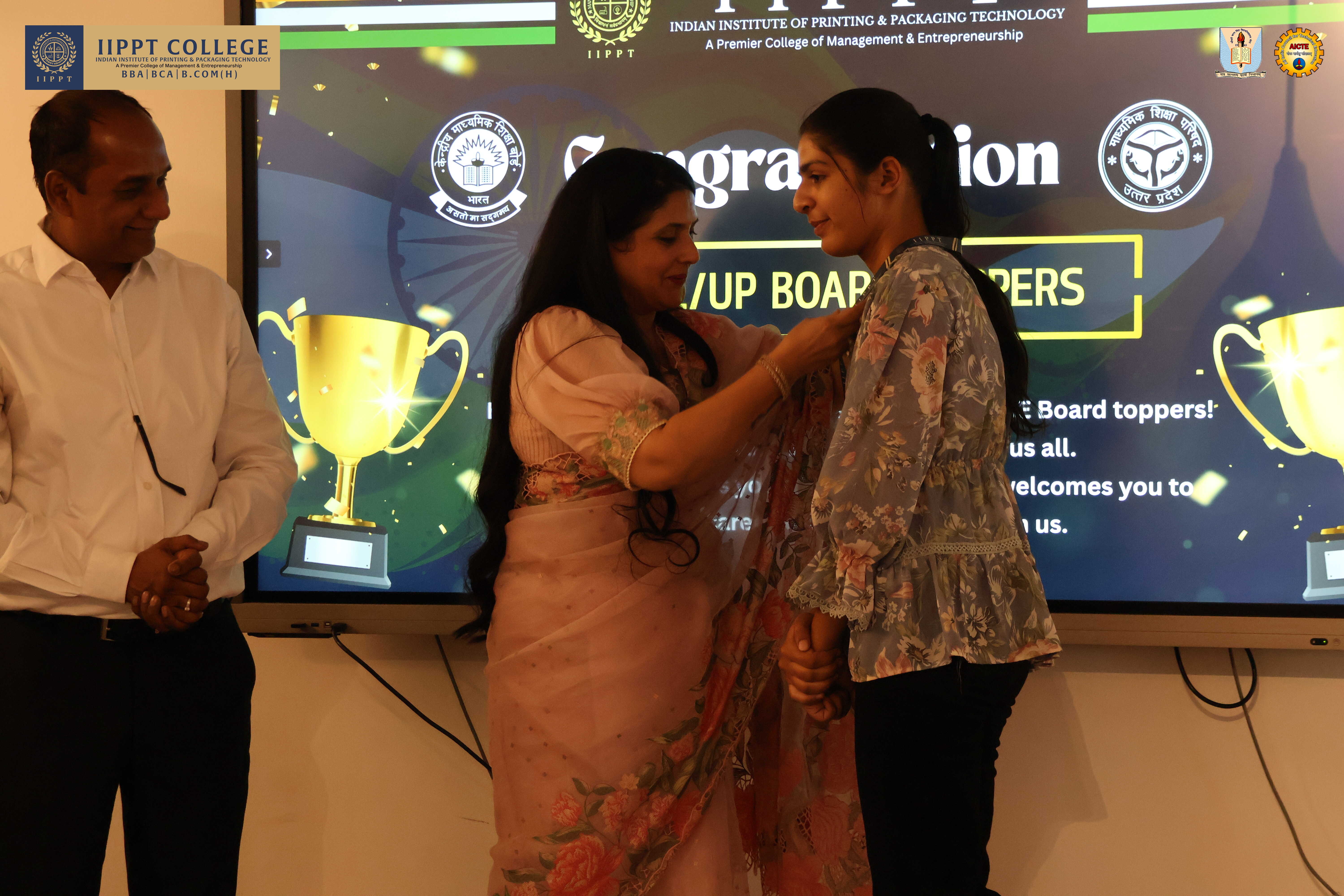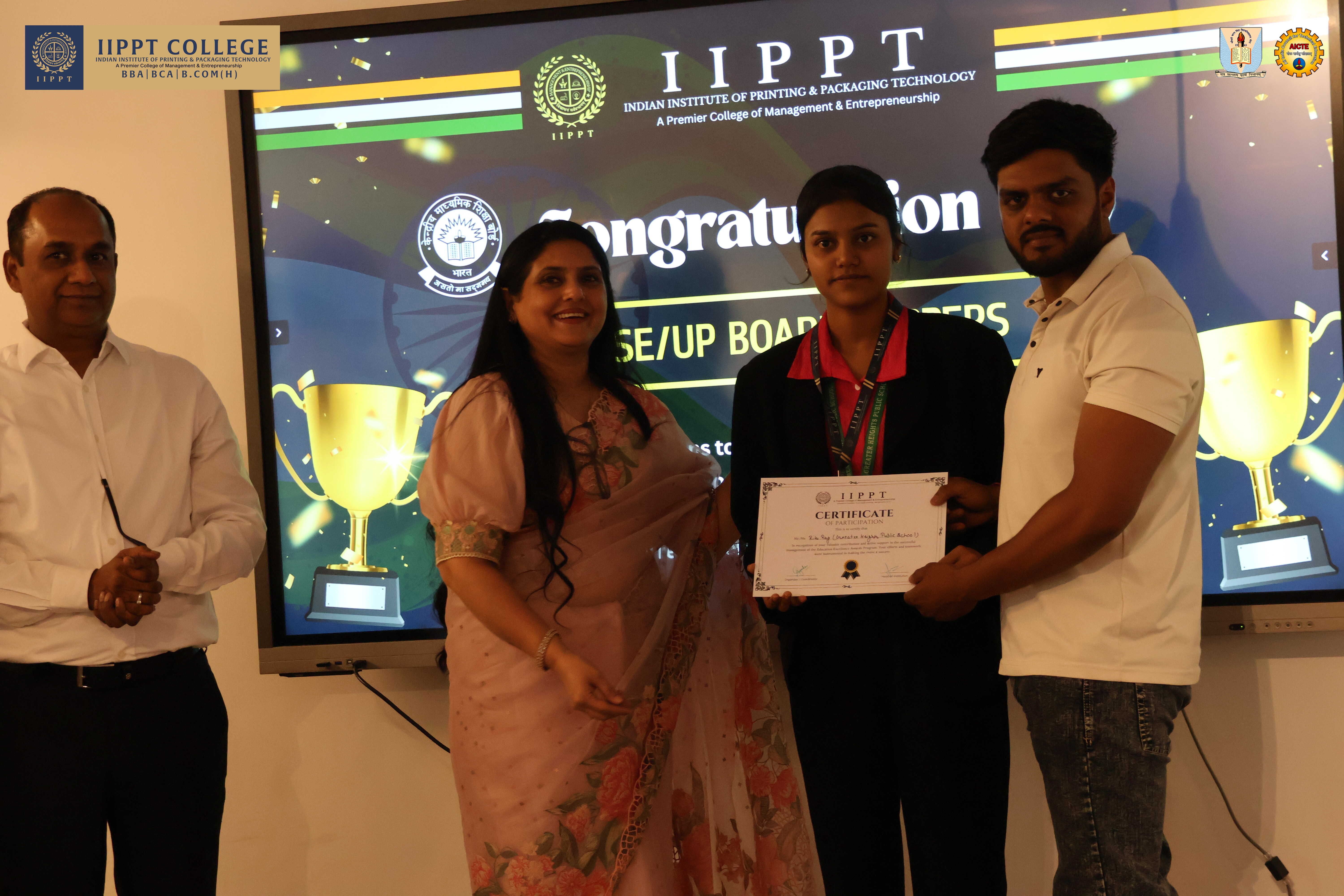 Chairman of IIPPT College Mr. Sanjay Sudan, Patron Mr. Sandeep Sudan, Chairperson Ms. Yogita Sudan, and GRD Noida President Mr. Aditya Ghidiyaal addressed the youth of the country. They emphasized the critical and decisive role students must play in shaping the bright future of 21st-century India. They also discussed the importance of AI tools in detail. They urged the students to master the intricacies of modern technology and fulfill the mission of “Viksit Bharat 2047,” which is the dream of Hon’ble Prime Minister Shri Narendra Modi. They concluded by asking students to take a pledge from today—to make India the “Vishwaguru” once again. This vision can only be realized through your hard work and foresight.